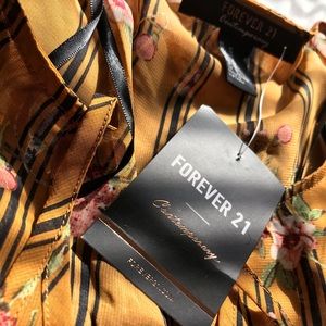 Super cute long sleeved blouse with stripes and flowers. It has a V neck and draping strings with bell sleeves too