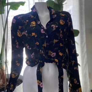 Long sleeve retro tie front crop top blouse Mod Cloth XL