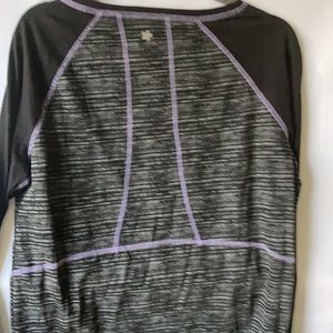Black gray and lavender long sleeve work out shirt by Tek gear. NWT scoop neck very cute size xl