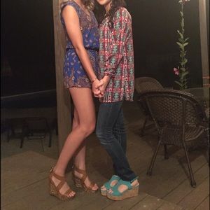 Multi colored adorable top! In perfect condition, is more lengthy than a normal small shirt. Fits either small/medium