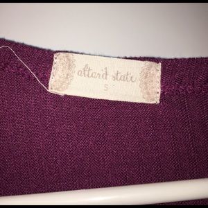 This is a thick long sleeve shirt that has only been worn once. Darkish purple/ burgundy with stripes and cute v-neck. It goes alittle longer in the back
