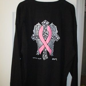 Long sleeve cotton tee black with breast cancer awareness on back Never worn Bought and paid to a good cause.