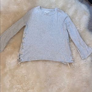 Grey long sleeve sweater with ties on side- never worn