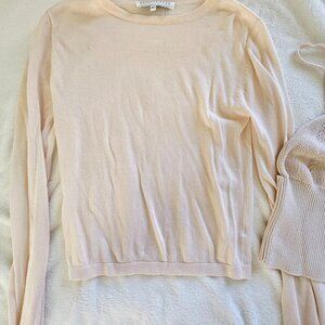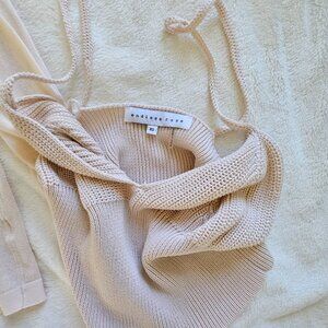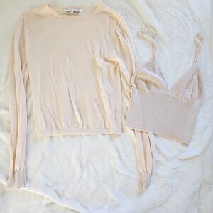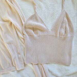 Cream sheer long sleeve top with cropped knitted ribbed tank to wear with it.