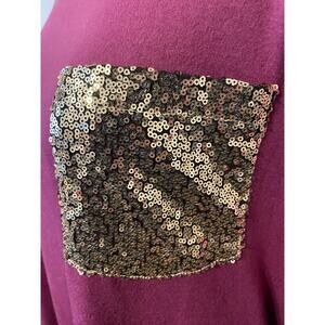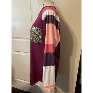 Long sleeve womens large multi color sequin pocket top