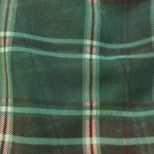 Beautiful dark green color with a black collar. Longer in the back & sheer material. (: