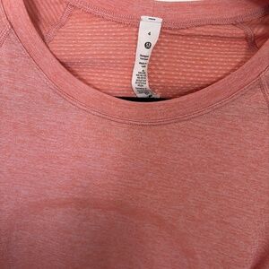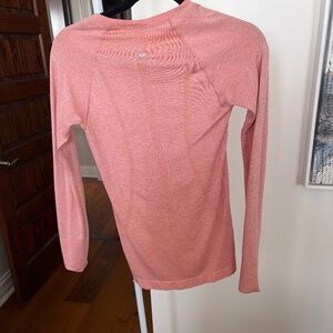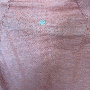 salmon colored long sleeved swiftly tech lululemon shirt. Like new