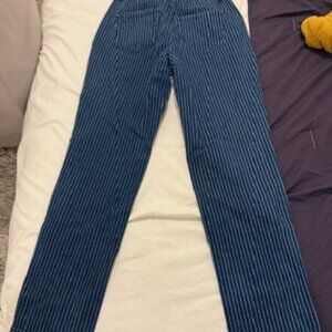 Brand new long white striped INC jeans. I don't feel like hemming since I'm 4'9, and cleaning out closet. Bought recently, not worn given the height issue for me. Size 4, straight legged.