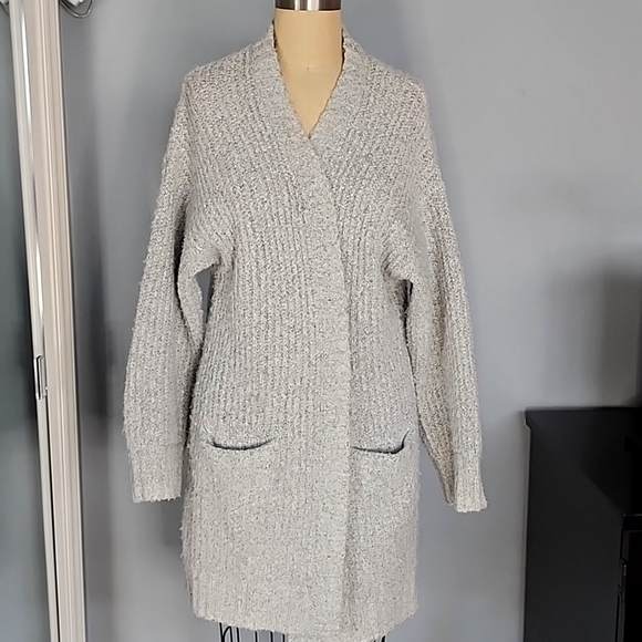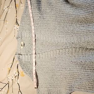 This super cozy jacket is perfect for lounging and lazy days. It's open and does not have any buttons so is very forgiving to size. See last 2 pics for measurements. All reasonable offers considered.