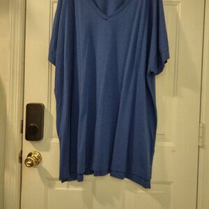 Soft tee, tunic length, size 4x, blue, v neck. From pet free, smoke free household.