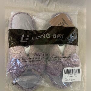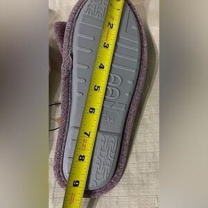 Stylish purple glitter slippers with a large bow. Perfect for cozy comfort.