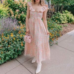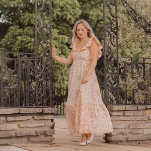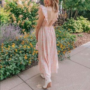 Long Floral Dress Open Back Linen Blend