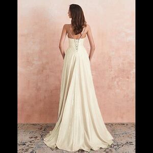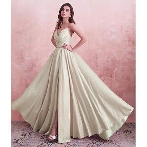 Features: Deep v neck , high side slit ,spaghetti,sleeveless , a line, floor length,lace up closure, glittery &sparkling cloth , fully lined with built-in bra