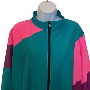 Long Shot EUC Green Pink Purple Colorblock Full Zip Windbreaker Sz S