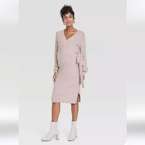 Long Sleeve Tie-Front Maternity Sweater Dress