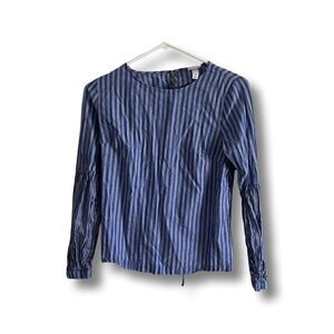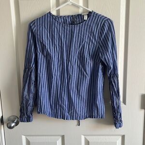 Long sleeve blue striped shirt in great condition. Size XS. Button at the back of the neck. Laces up in the back to adjust the fit.