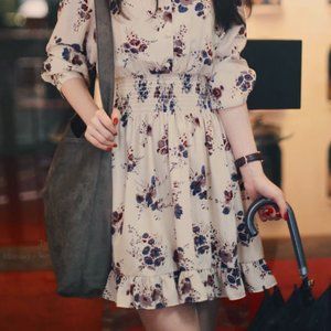 Long-Sleeved Floral Print Chiffon Dress Size Small in Light Tan