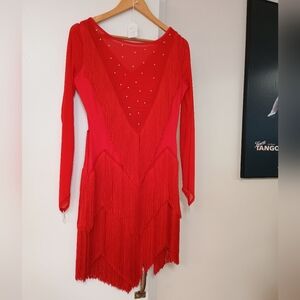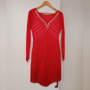 Long-Sleeved Red Fringe Rhythm Dress - Ballroom Dance