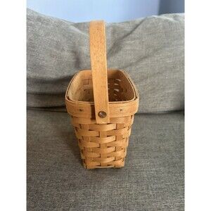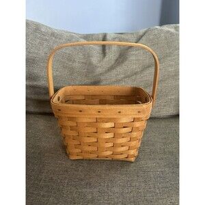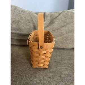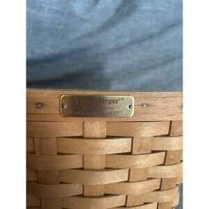 The Longaberger 1994 Dresden Tour Basket with Swinging Handle is a beautifully crafted storage basket made of wood in a brown color. This rectangular basket features a woven pattern and is handmade in the United States. It is a collectible piece that is perfect for all occasions and can be signed by the family who made it. This original piece from 1993 showcases the exquisite craftsmanship and timeless design that Longaberger is known for, making it a unique and valuable addition to any room.