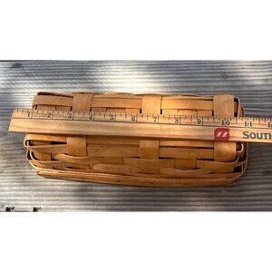This Longaberger basket, crafted in 1994, showcases traditional handwoven artistry. Its rectangular shape enhances storage versatility, while the signed base adds a touch of uniqueness. Ideal for organizing small items or as a decorative piece.