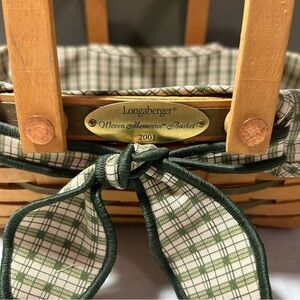 Longaberger 2001 Woven Memories Tour Basket+Liner+Tie On-Signed by Family EUC. Signed ! Smoke free home. Ships fast! Great condition!