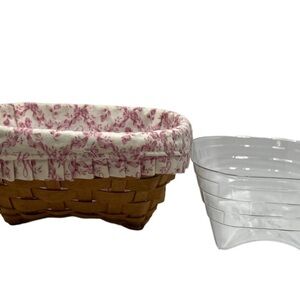 Longaberger 2008 Horizon of Hope Pink Fabric Basket Wood Lid & Leather Ribbon.