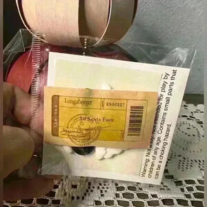 This Longaberger 2013 Small Santa Belly Basket is made with wood splints. The Basket measures approximately 5"RD x 8.75"H and features a Woven Santa with Whitewashed and Bold Red Weaves with a Black Belt finished with a Brushed Nickel Buckle. There is a Santa Hat and face with button eyes. The face pieces are still in the seal bag for you to assemble. This Santa would add a real festive feel added to a table center piece. This Santa has never been displayed. I also have a large and a Medium snowman listed similar to this Santa. Smoke free home.