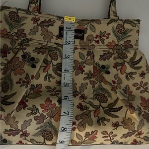 Longaberger Autumn Path Cream Brown Fall Print Small Gathered Bag