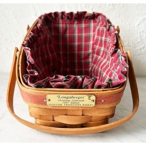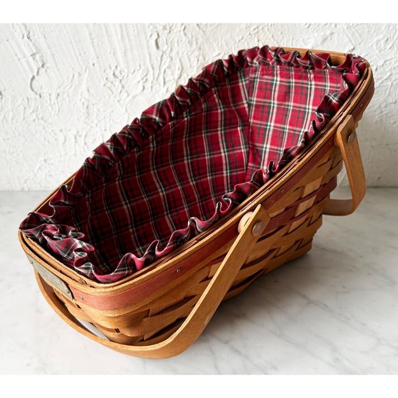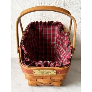 Longaberger Basket Christmas 1991 Yuletide Traditions Basket Plaid Fabric Liner