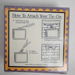 NEW In Box: Longaberger 2 Sided Mail Box Design Basket Tie-On. Clematis flowers and mail on one side and Christmas wreath and packages on the other side. Measures approximately: 3.25" x 3.25" x 1.25".