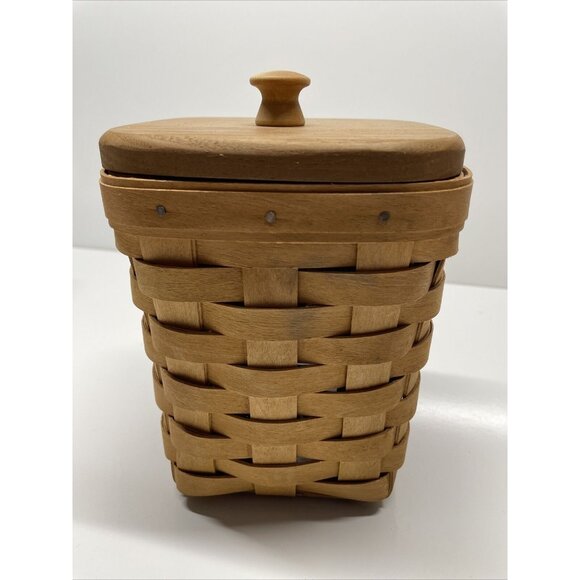 Longaberger Basket with Wooden Lid and Protector 2004 Handmade Basket.