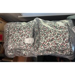 Longaberger Baskets Traditional Holly Pillows Christmas Set of 2 NEW 16" square