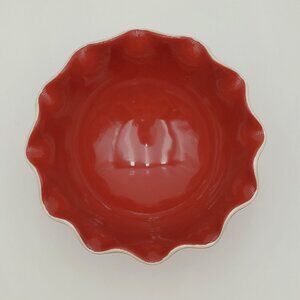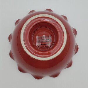 Longaberger Pottery Be My Valentine Ruffled Bowl. Red ruffled edge footed bowl, candy dish. Excellent pre-owned condition. 4.25" tall, 7-1/8" across the top, 3-3/8" base.