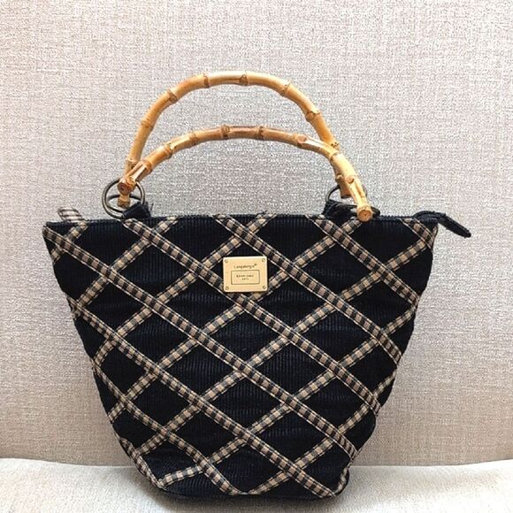 Longaberger Black and Tan Handbag Tote with Bamboo Handles Vintage