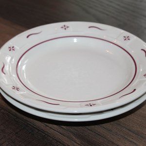 Longaberger Bread Plates Set of 2 Ivory with Red Accents Woven Traditions USA