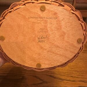 Elegant Longaberger basket. Features sturdy handle. Perfect for home decor.