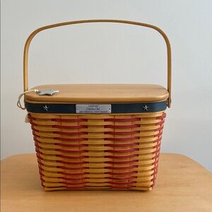 Red, swing handle very good to excellent condition 7 x 5” 7” tall multiple signatures