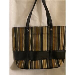 Longaberger Canvas Leather Small Tote / Purse 9 X 11 in. Brown Tan Black Stripes