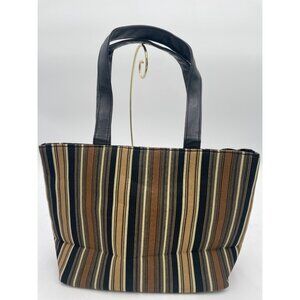 Longaberger Coffee-Themed Tote Bag With Stripe Pattern & Black Faux Leather Hand