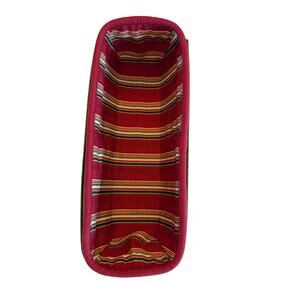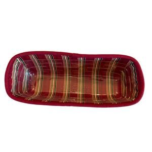 This listing is for the purchase of a Longaberger Cracker Basket with hard plastic protector and striped fabric liner.