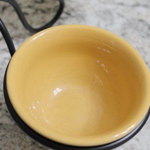 Longaberger Dessert Bowls with Wrought Iron Caddy Server Stand Butternut Yellow