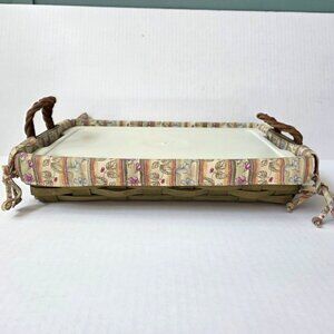 Longaberger Green Medium Serving Tray Basket Lidded Protector Stripe Liner Set