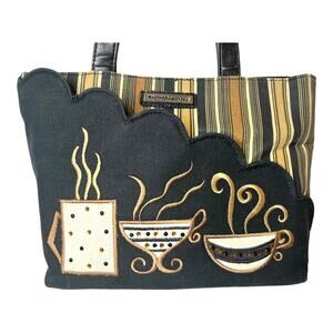 Longaberger Handbag Shoulder Bag Coffee Cup Themed Purse Black Brown Gold Vtg