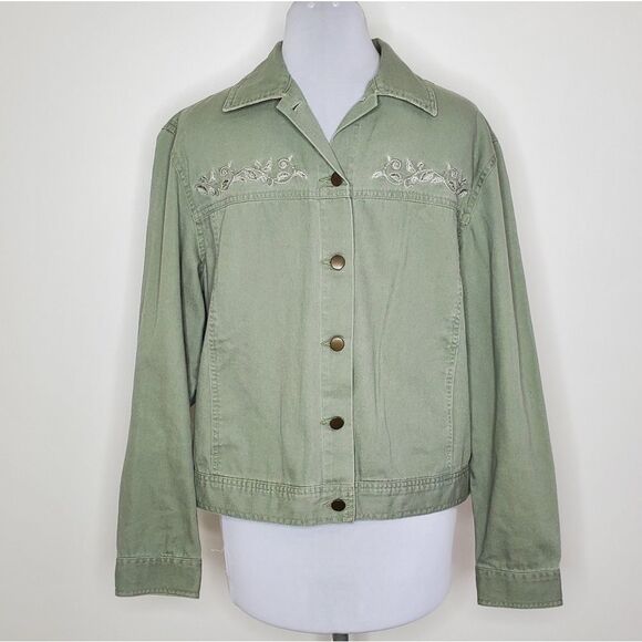 Longaberger Homestead Green Embroidery Button Down Jacket | Large