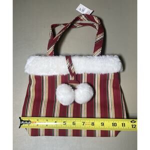 Longaberger Homestead Holiday Striped Tote Bag W/ Holiday Striped Mini Stocking