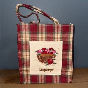 Longaberger Homestead Plaid Apple Basket Small Tote lunch Bag with front pocket