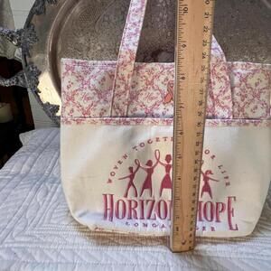Longaberger Horizons of Hope pink print fabric and canvas tote bag