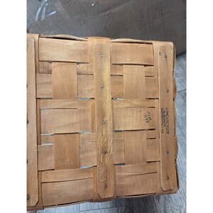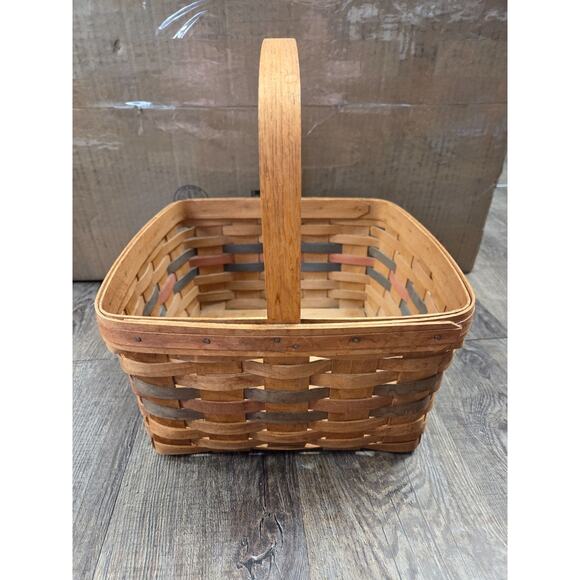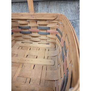 Longaberger Large Handwoven Brown Basket Signed 1988 Red Green Trim With Handle