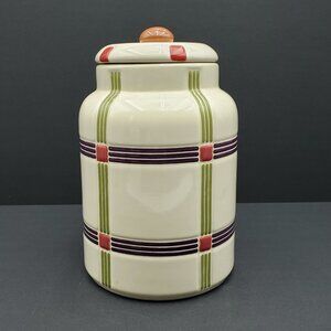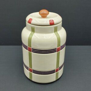 Longaberger Mixed Harvest Canister / Longaberger Multi Plaid 3 Quart Lidded Jar. 8.75" tall overall, 7.5" without the lid, 4.25" across the top, 5.5" at the base. Excellent pre-owned condition. The lid has a seal. Perfect for coffee, tea, sugar, flour, cookies or pet treats! Sorry, no bundling due to weight.
