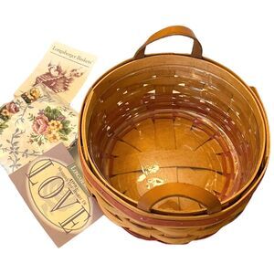 Longaberger 1995 MOTHERS DAY BASKET Of Love + Mother's Day Floral LINER & Plastic PROTECTOR Leather Handles - Made In The USA - NEW Condition With Mother's Day Of Love And Care Cards!